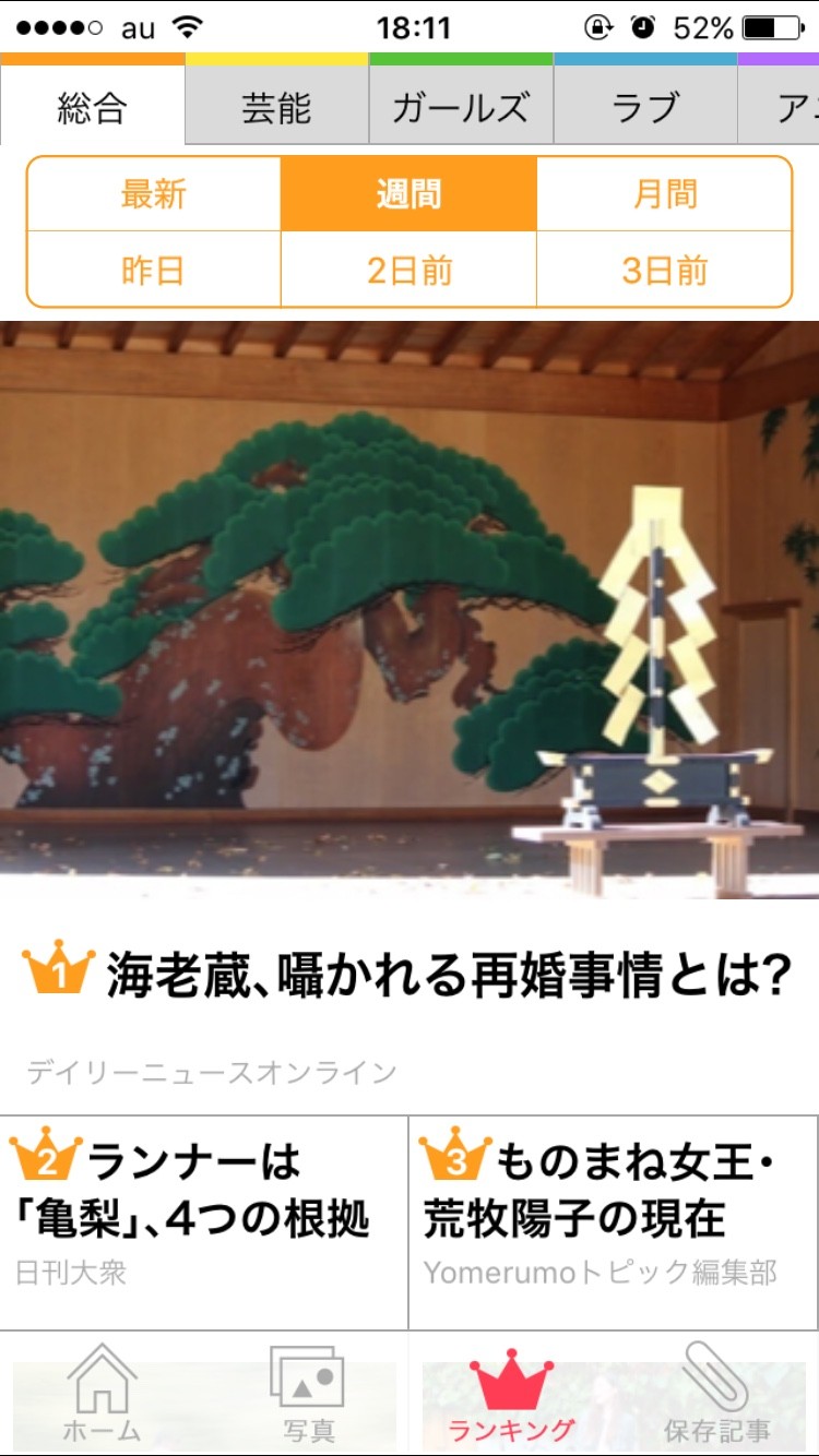 下部のタブからランキングタブを選ぶとそれぞれのタブの最新、週間、月間ランキングと