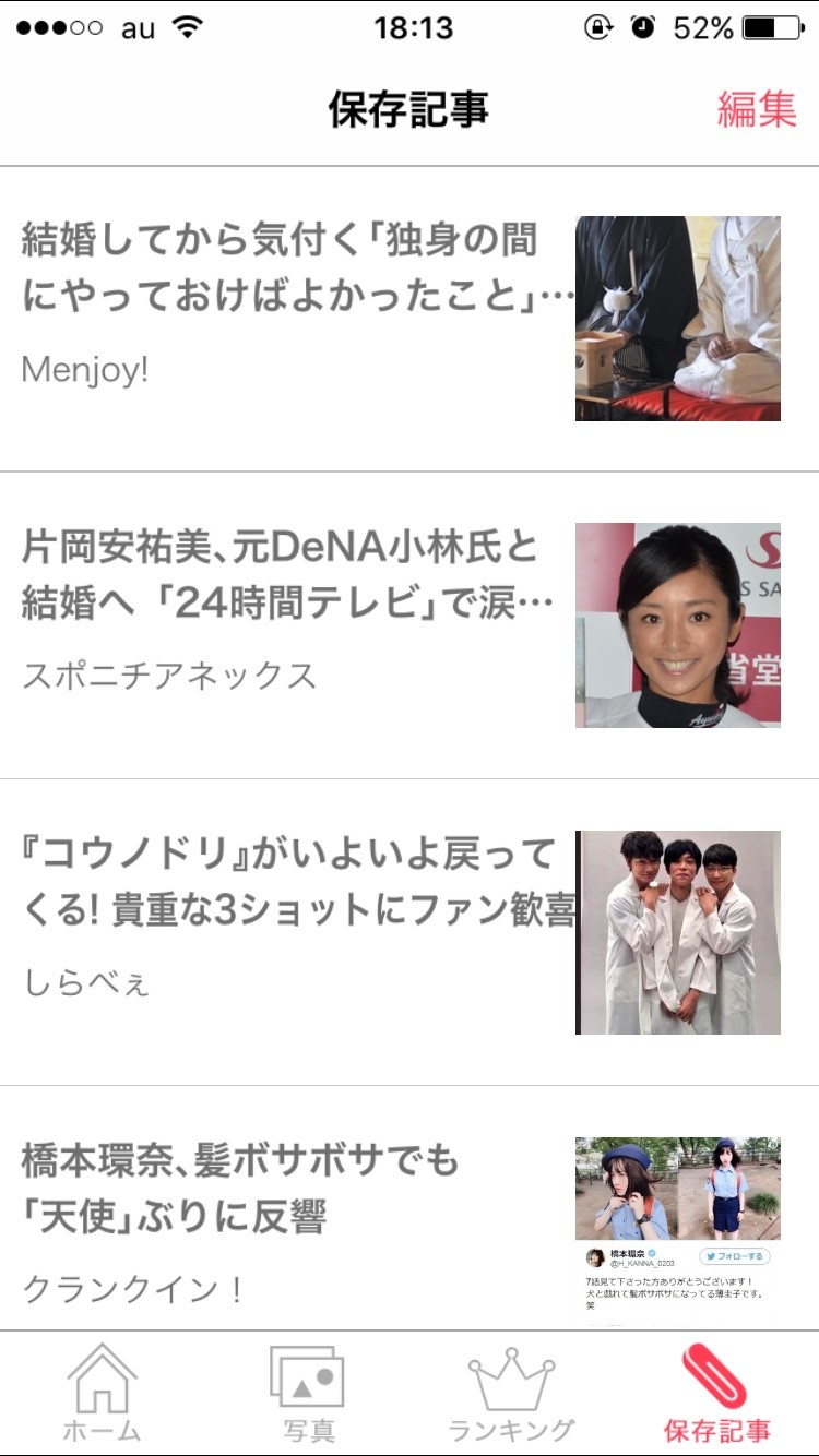 プッシュ通知で1日3回も最新のニュースを教えてくれるので、取りこぼすことがありません。芸能やエンタメが好きな方にはとっておきのアプリです。