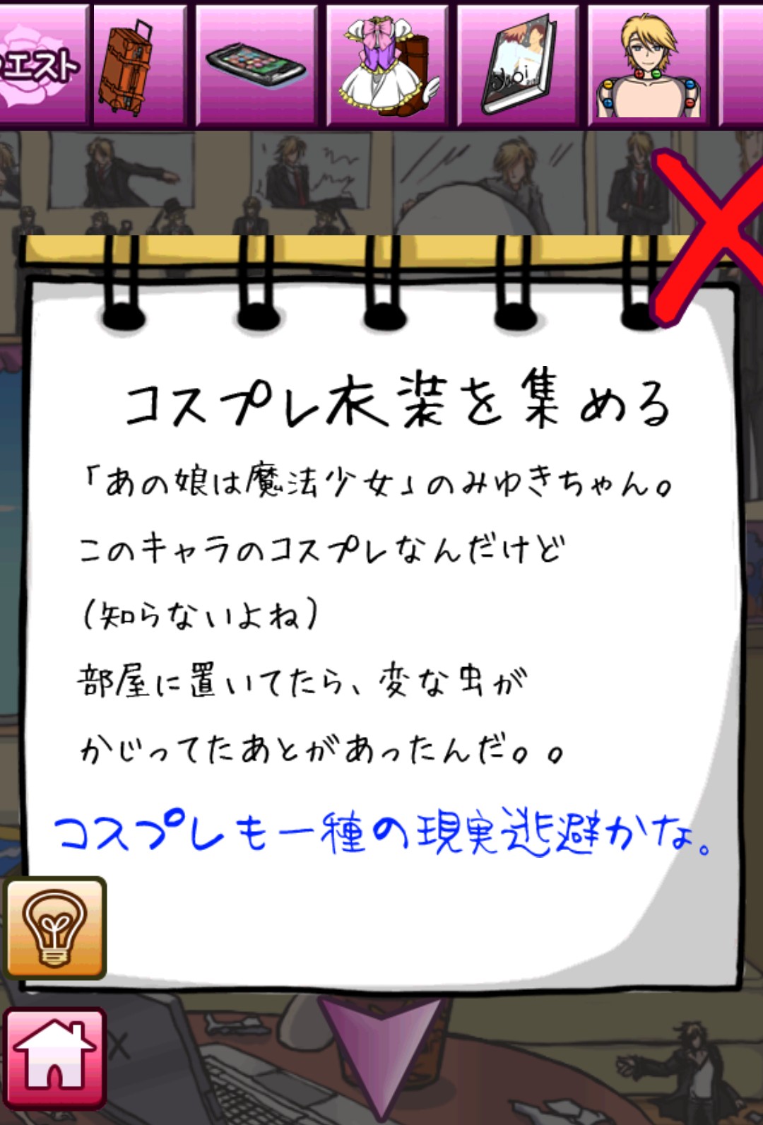 腐女子の部屋をとことん書き込んで作られている「腐女子?クエスト」では、イラストの作りこみと同じぐらい小さな謎解きが詰め込まれています。