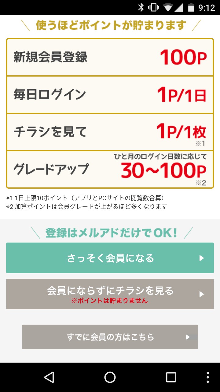 シュフーポイント会員は、アプリへのログインやチラシの閲覧でポイントがもらえる機能です。たまったポイントで毎月の懸賞に応募すると、抽選で賞品がもらえます。