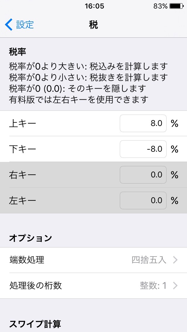 逆に、税込み価格計算をする場合には、上スワイプを行えば同様となります。