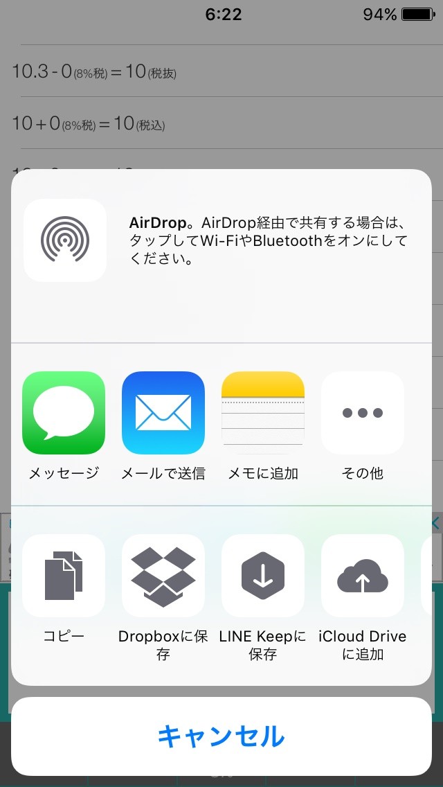 それと、履歴共有ボタンにて、履歴に残っている計算式を電子メモったり、メール送信したり、