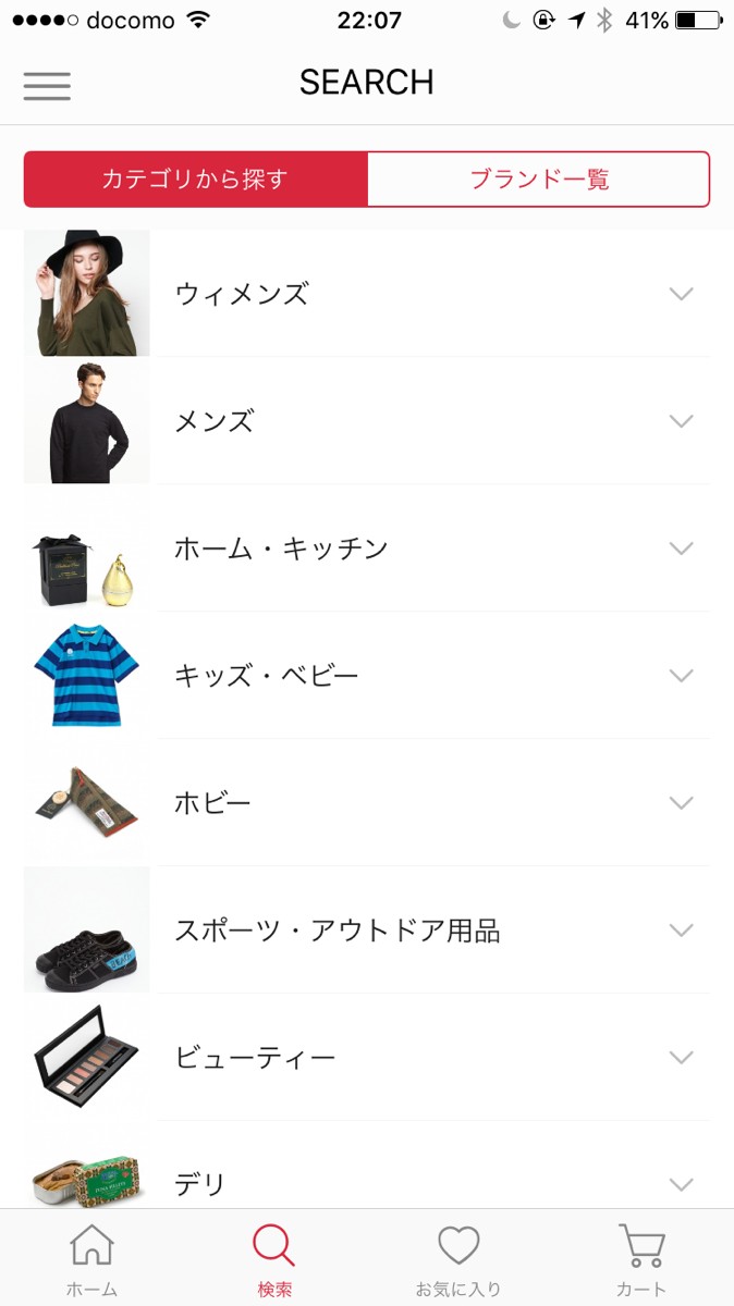 カテゴリ検索は、画面下部のメニューバーにある「検索」のアイコンからも選択できます。