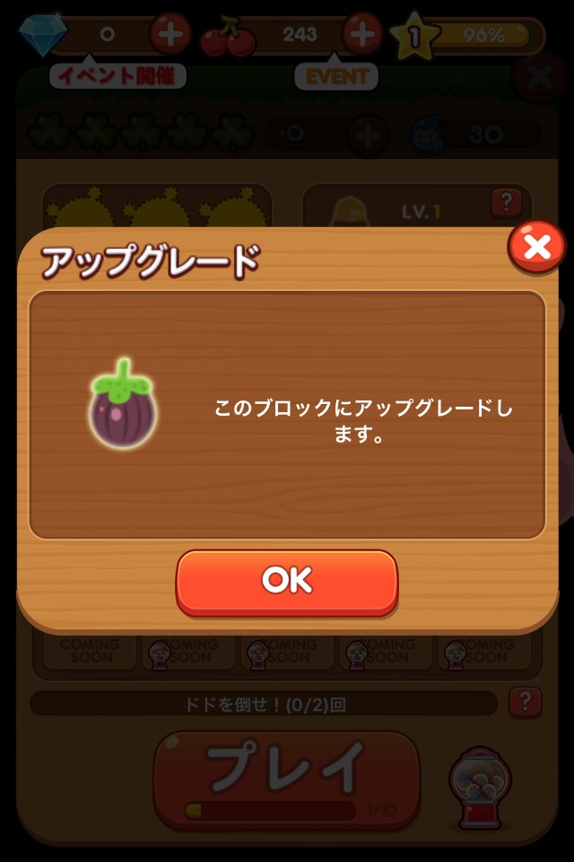 高スコアを出すには、効率良くブロックをつなげて消すのはもちろん、モンスターを攻撃する野菜のグレードアップも重要です。アップグレードにはチェリーが必要となるので、ゲームをプレイしながらチェリーの獲得量にも気を配ってみましょう。