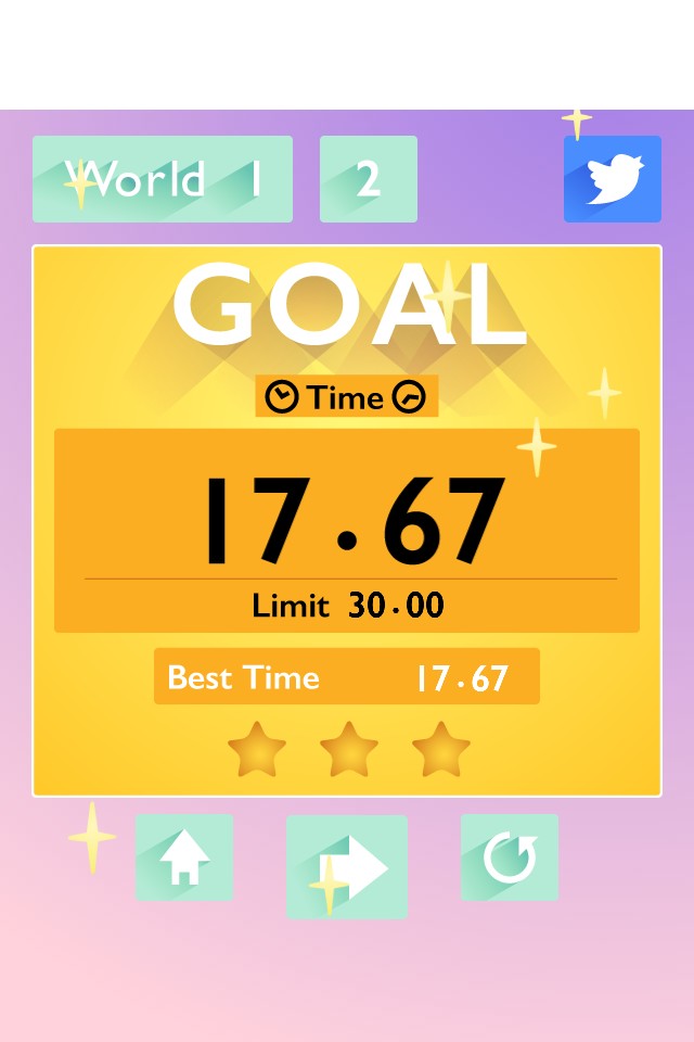 既にクリアしたステージを再度選択すると、コースに星が表示されるようになります。ただゴールを目指すだけの迷路が、星を集めてゴールするゲームに変わるのです。クリア後はしっかりと星も集めて、完全クリアを目指しましょう。