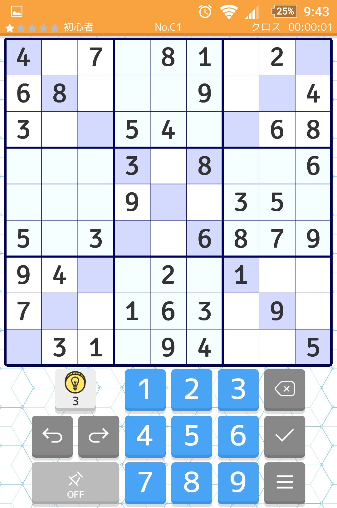 基本のナンプレルールに慣れながら、難易度を上げたステージに挑んでいくといいでしょう。