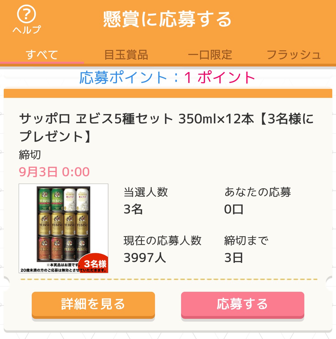 ・クリアポイントで用意されている懸賞に応募可能