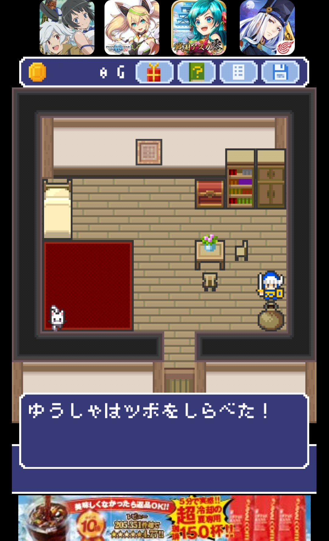 『脱出ゲーム「あいつ勇者やめるって」』では、ロールプレイングゲームでよくある勝手に宝箱を開けたり、ツボを調べたりができます。