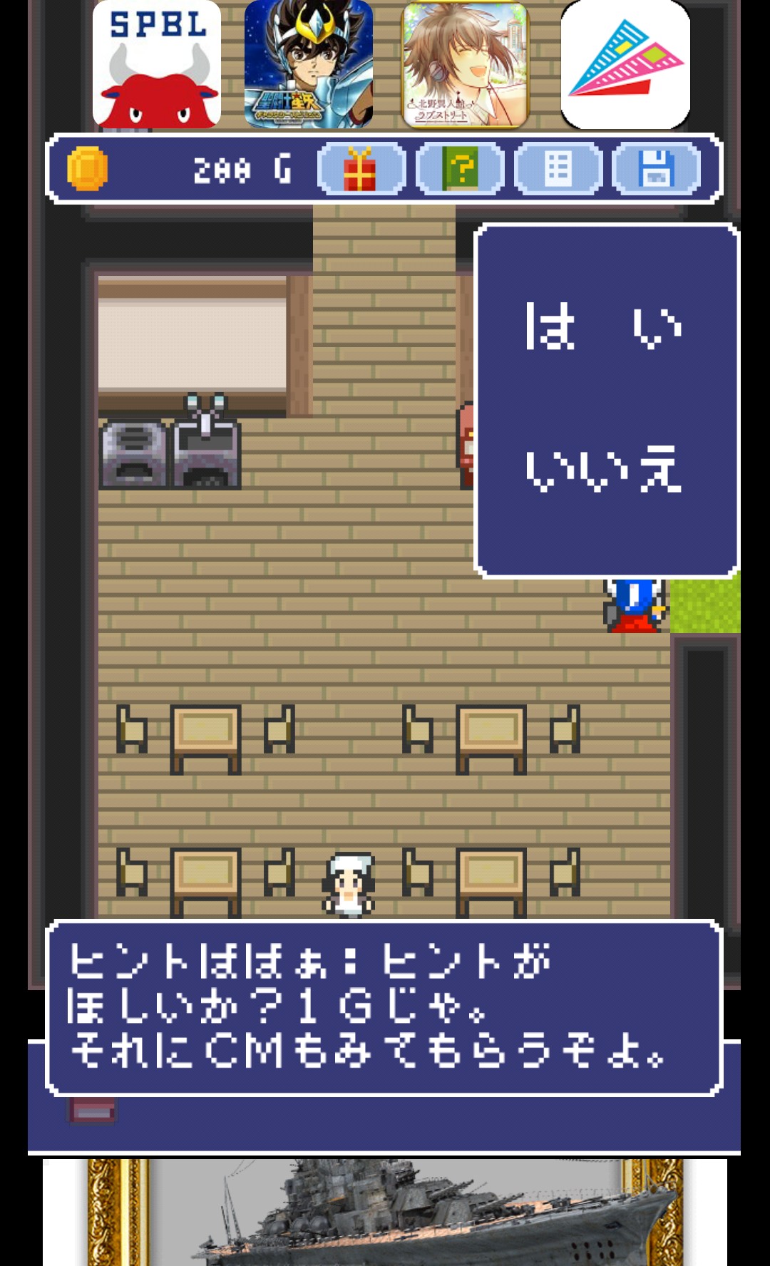 そんな中には、なんとヒントを売るヒントばばぁがいます。1GとCMを見るとヒントを教えてくれます。安い気もしますが、お店でアイテムを購入もしたいので、実はGの余裕はあまりありません。