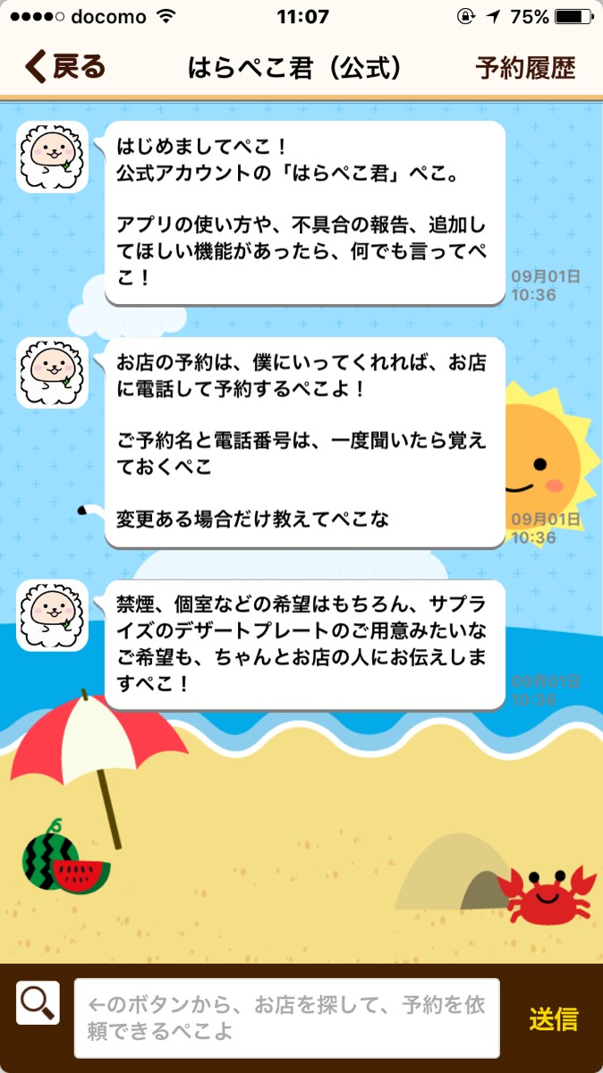 音声は文字を入力する手間がはぶけますし、文字入力では『ペコッター』のキャラクターのはらぺこ君が質問をして条件を絞ってくれます。