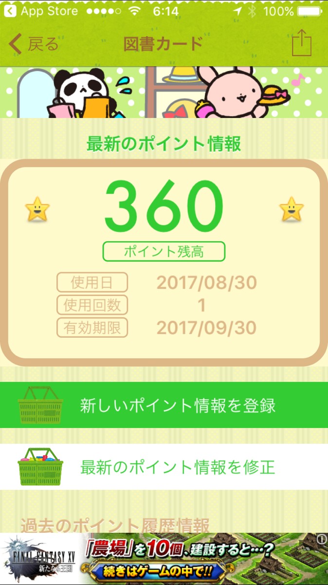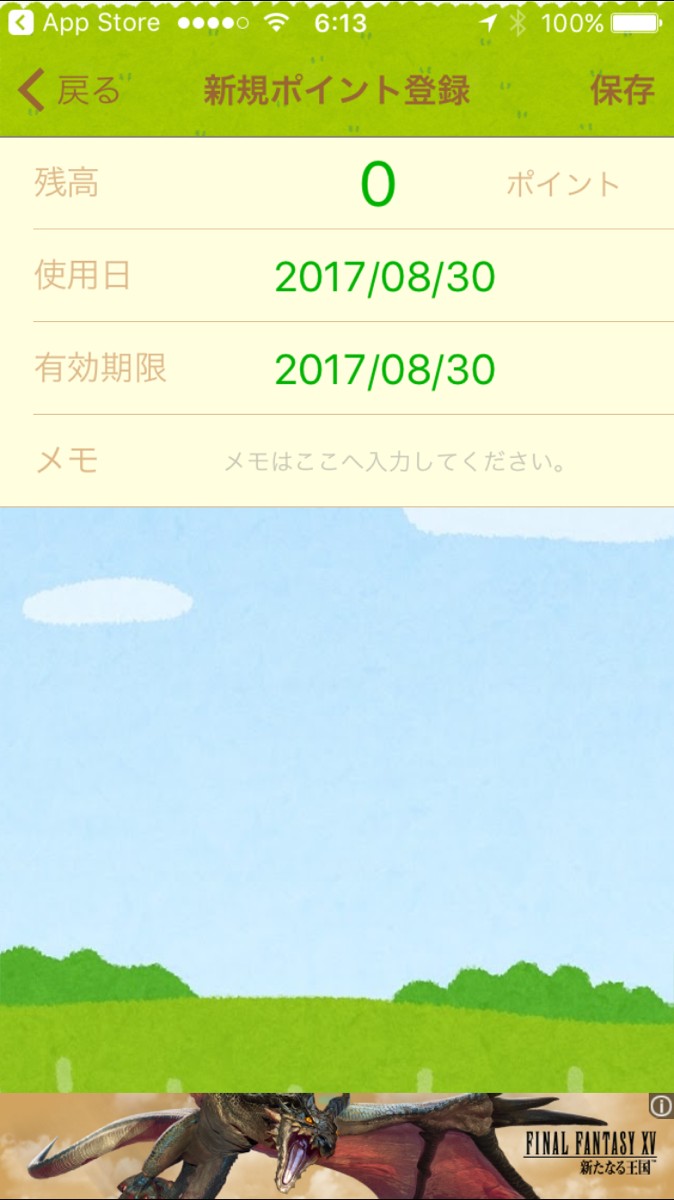 入力した最新のポイント情報が大きく表示されます。