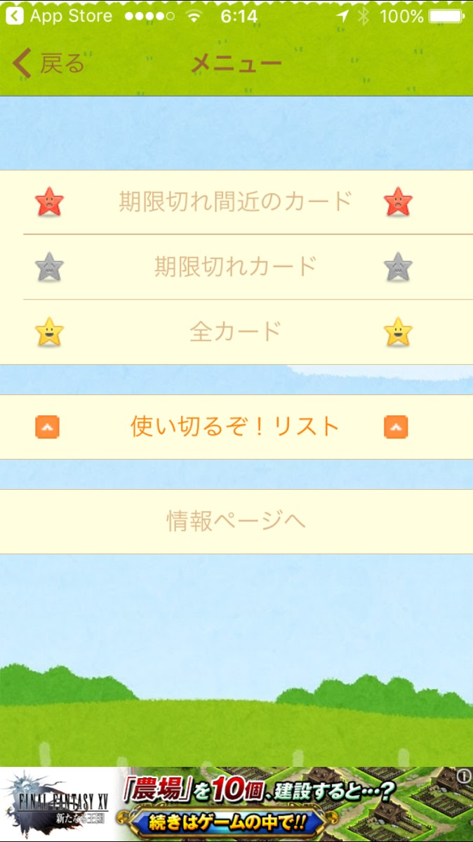 ・有効期限間近のカードを一覧で表示してくれる