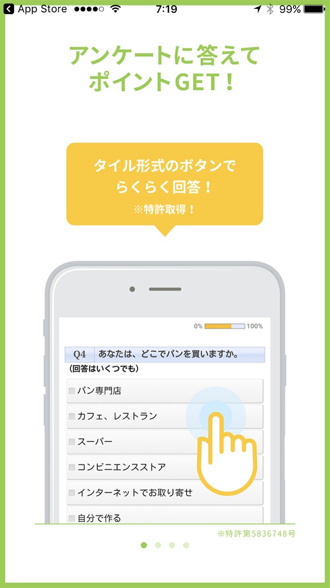該当する項目をタップして答えていく簡単・お手軽なアンケート