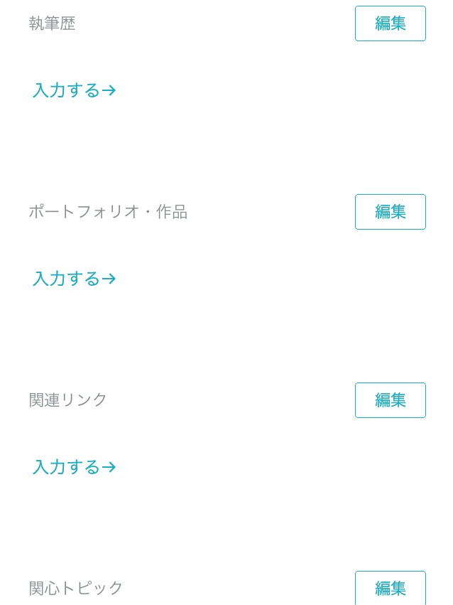 プロフィールには、一般的な履歴書に書く内容に加えて、過去の実績が分かるポートフォリオ・作品や関連リンクなども入力することができ、自分の強みや実績をアピールしやすいです。