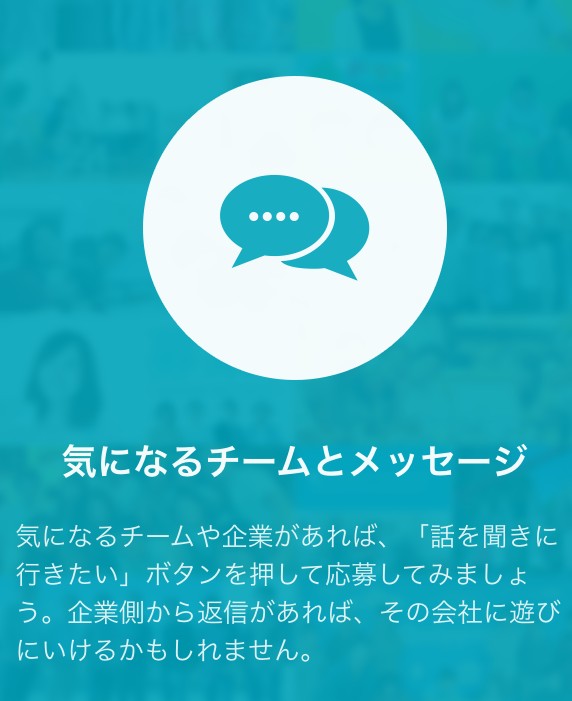企業担当者とチャット形式で会話をすることができ、その中で直接会って話を聞きたいなどの要望を伝えることも可能です。