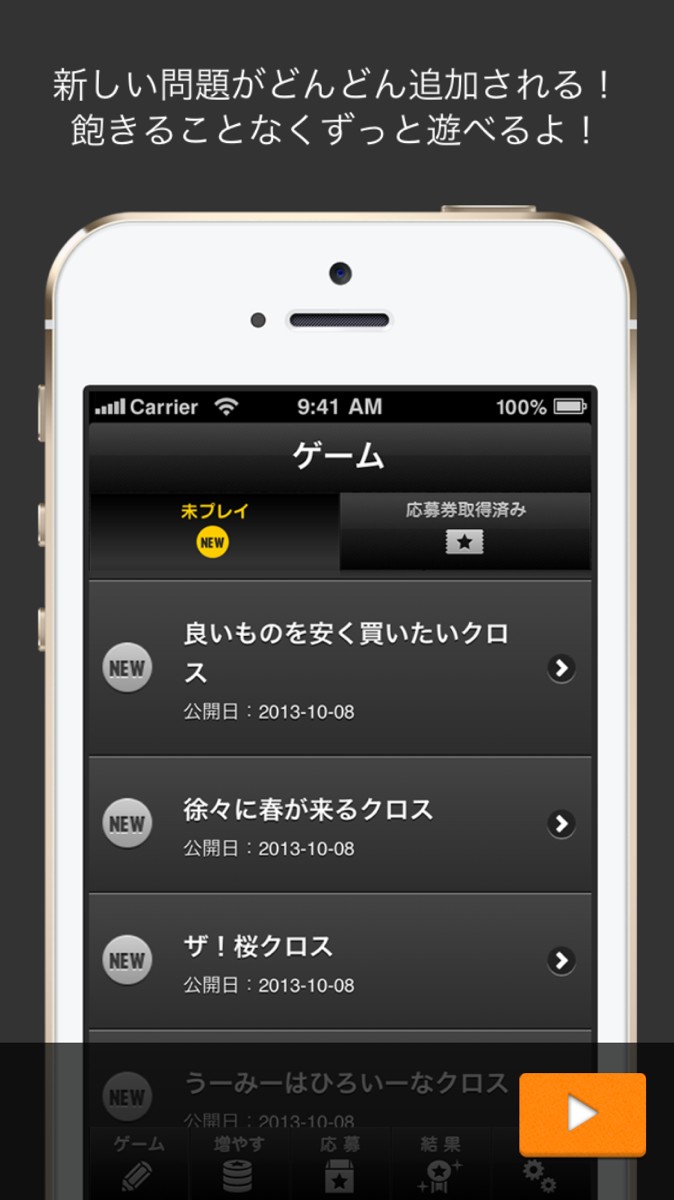 楽しいクロスワードパズルを解きながら、懸賞にも応募できる面白いアプリです。クロスワードが好きな人はもちろん、あまり好きじゃなかった人でも楽しめますよ。空き時間に、待ち合わせなどに是非アプリを使ってくださいね。