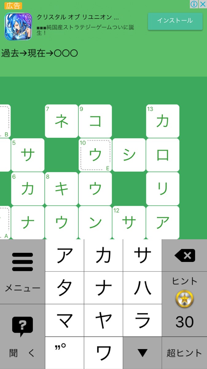 わからなくなったら、「ヒント」をタップします。ヒントを使う際はコインが必要。コインは広告を見ると貯まりますよ!