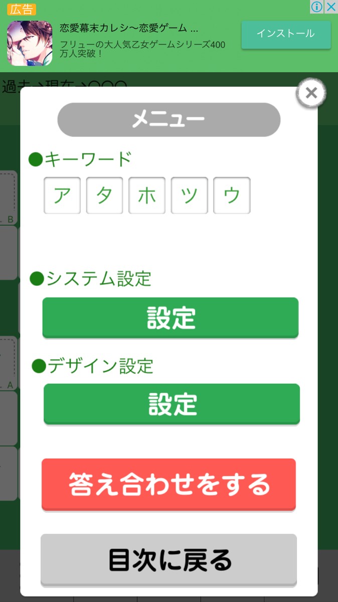 ・全部回答できたらメニューにある「答え合わせをする」ボタンをタップ