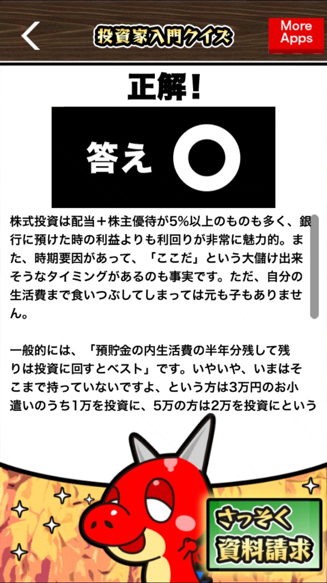株や投資に関する問題を○×形式で答えていきます。答えだけではなく、なぜそうなのかという解説もキチンとのっているので、楽しく答えて勉強もできます。