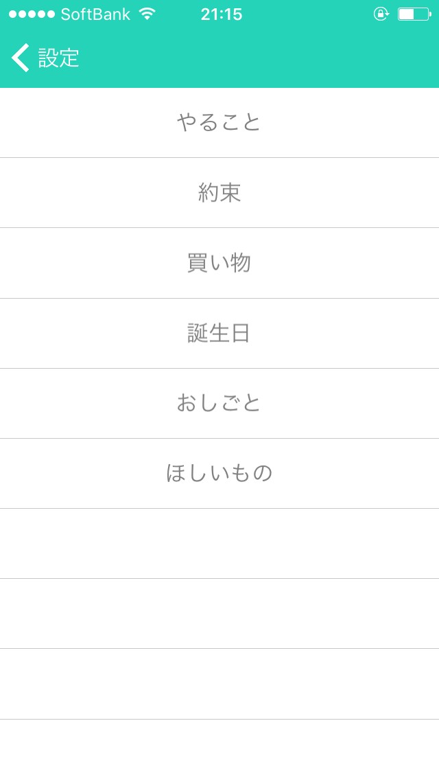 このカテゴリーとは、例として、買い物、約束、仕事などと言った種類分けを