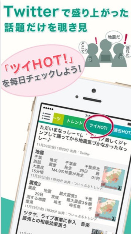 ・「HOT!ワード」「トレンド」「ツイHOT!」機能で流行のニュースがわかる!