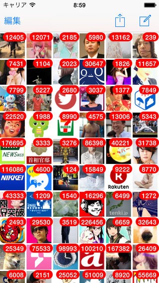 ・未読件数をフォローアイコン一覧に表示。フォローが新しいつぶやきをした時に、その件数をアイコン一覧のバッチ表示(サムネ写真の右肩に数字のみで表示)するのですぐに確認できます。