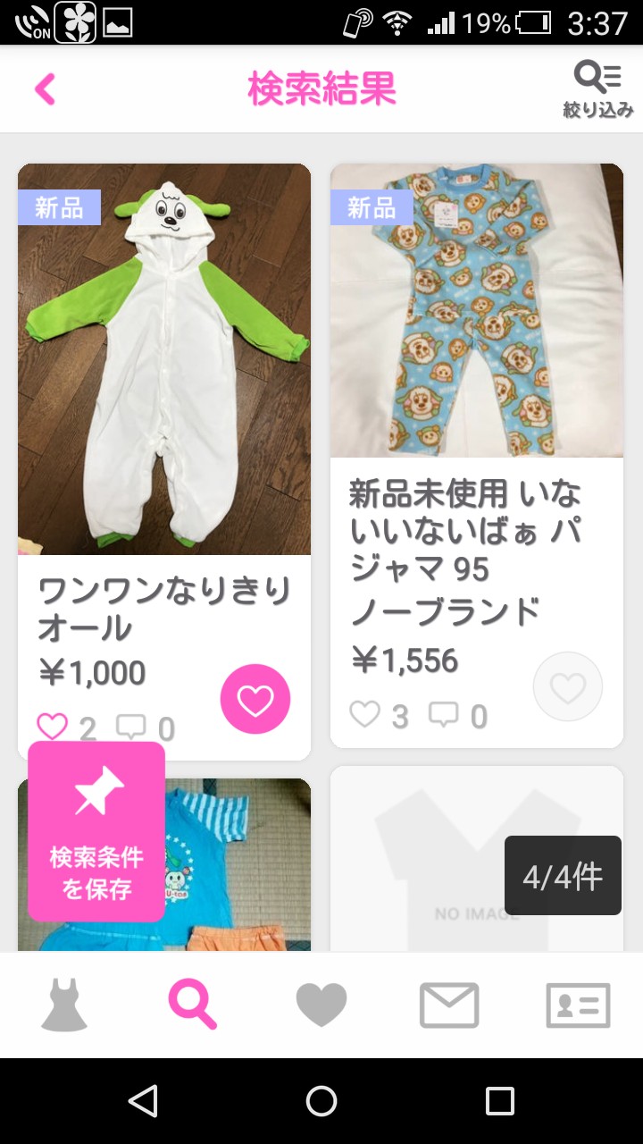 3.お買い物は、下の虫めがねマークをタップして、カテゴリまたはブランド名を選びます。サイズや価格などで絞り込みできるので、欲しいものが探しやすいです。質問や価格交渉して、良ければ注文をタップします。