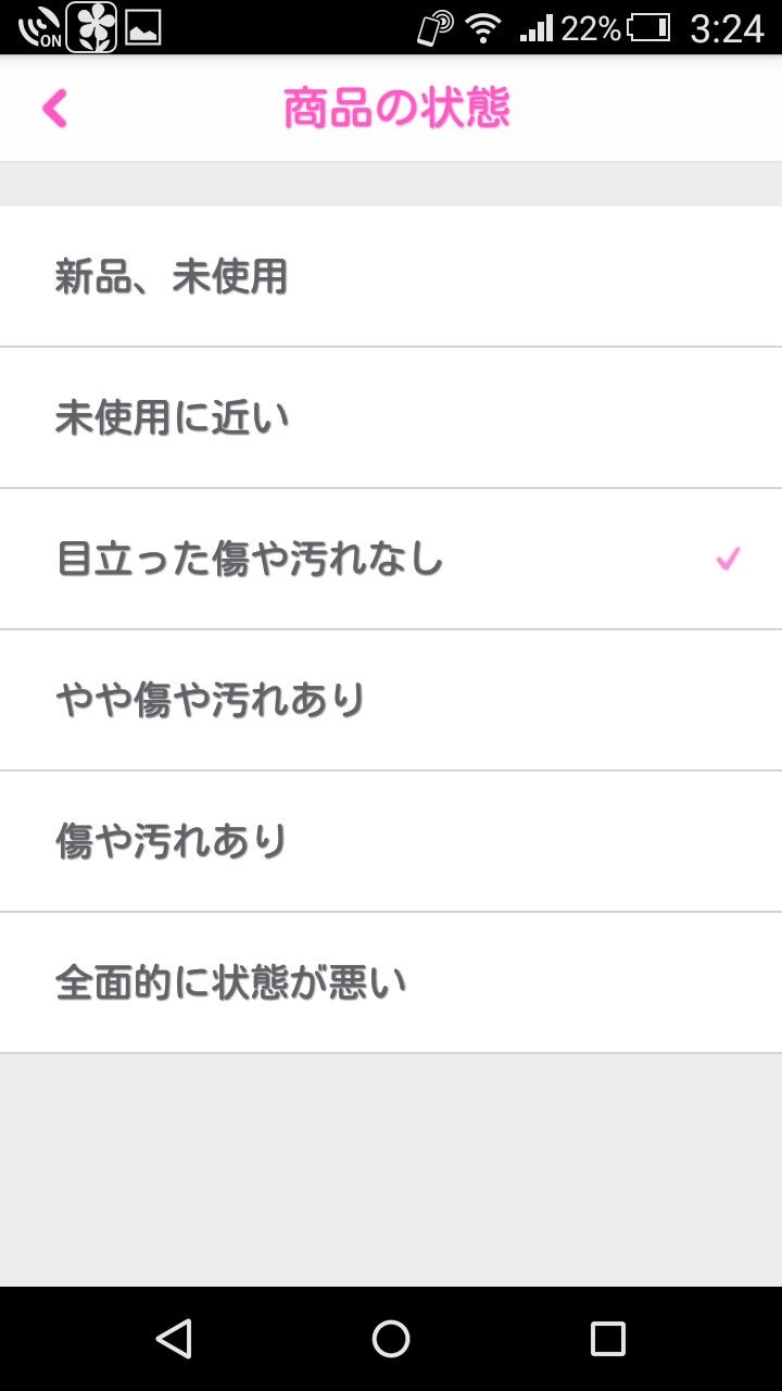2.出品には会員登録が必要になります。ニックネーム、メルアド、パスワード、生年月日、性別を入力し、メール認証をすれば準備完了。右下のカメラマークをタップして売りたい商品の写真を撮り、品名、金額、状態などを入力していきます。状態や発送方法などは、プルダウンリストから選ぶだけなので簡単です。