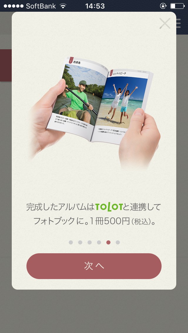 このアプリは500円フォトブック作成アプリ「TOLOT]と連携しているため、