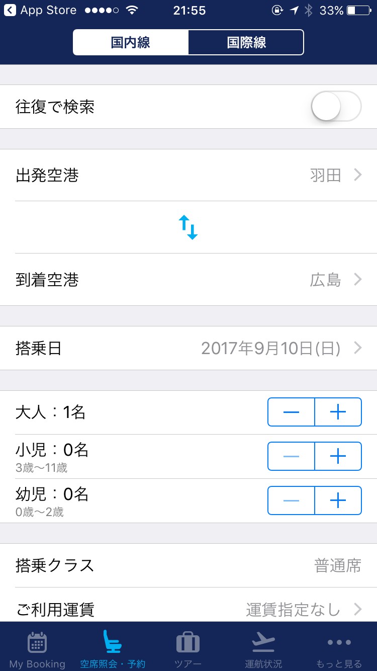 ご自分の乗りたい飛行機が見つかりましたら、アプリでそのまま購入をすることができます。