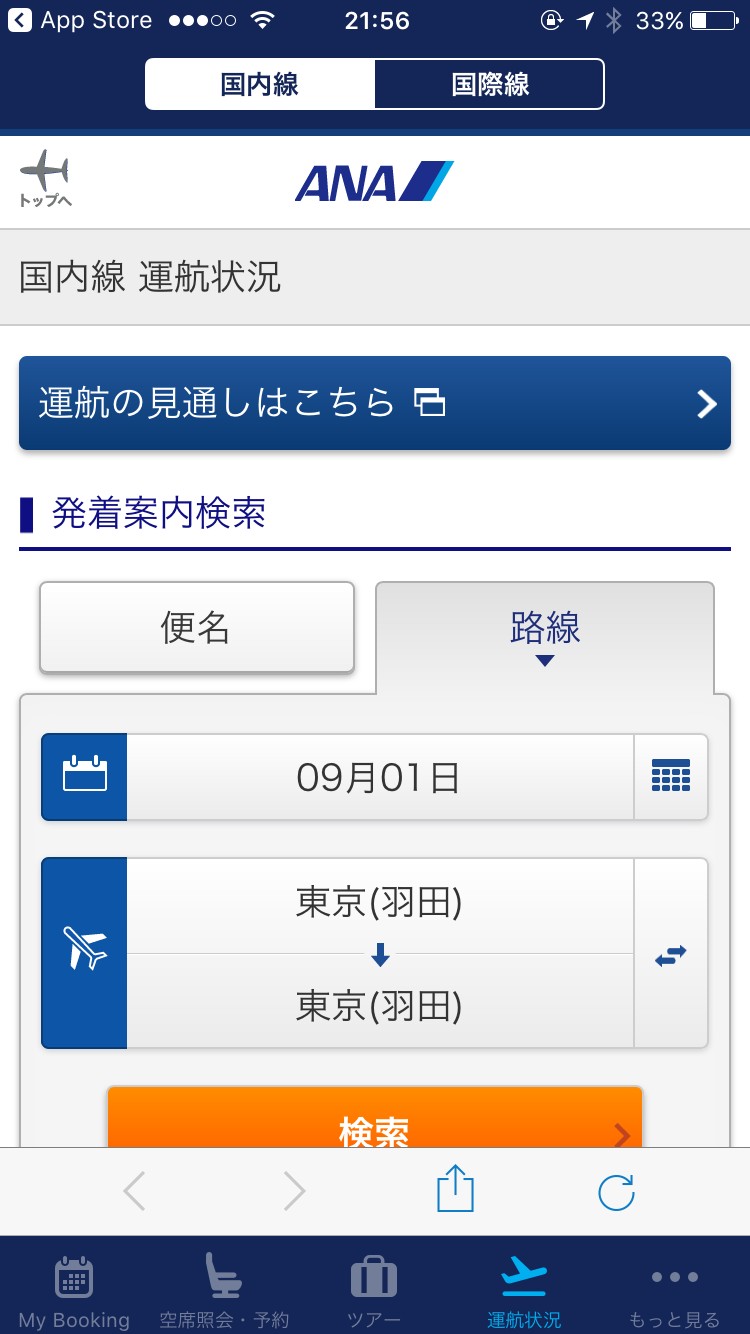 「ANA」アプリを使えば、ANAの運行状況を簡単位確認することができます。