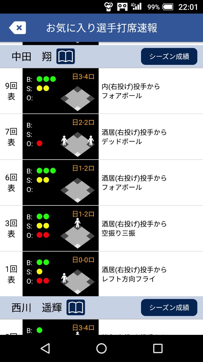 ・お気に入りの選手が登録でき、さらに選手の打席速報まで知ることができる