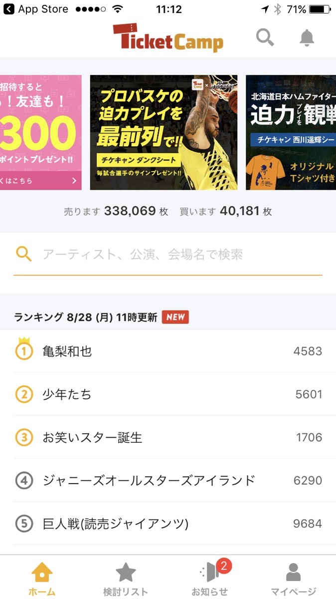 「チケットキャンプ - 国内No.1 安心チケット売買アプリ」でチケットをGET!