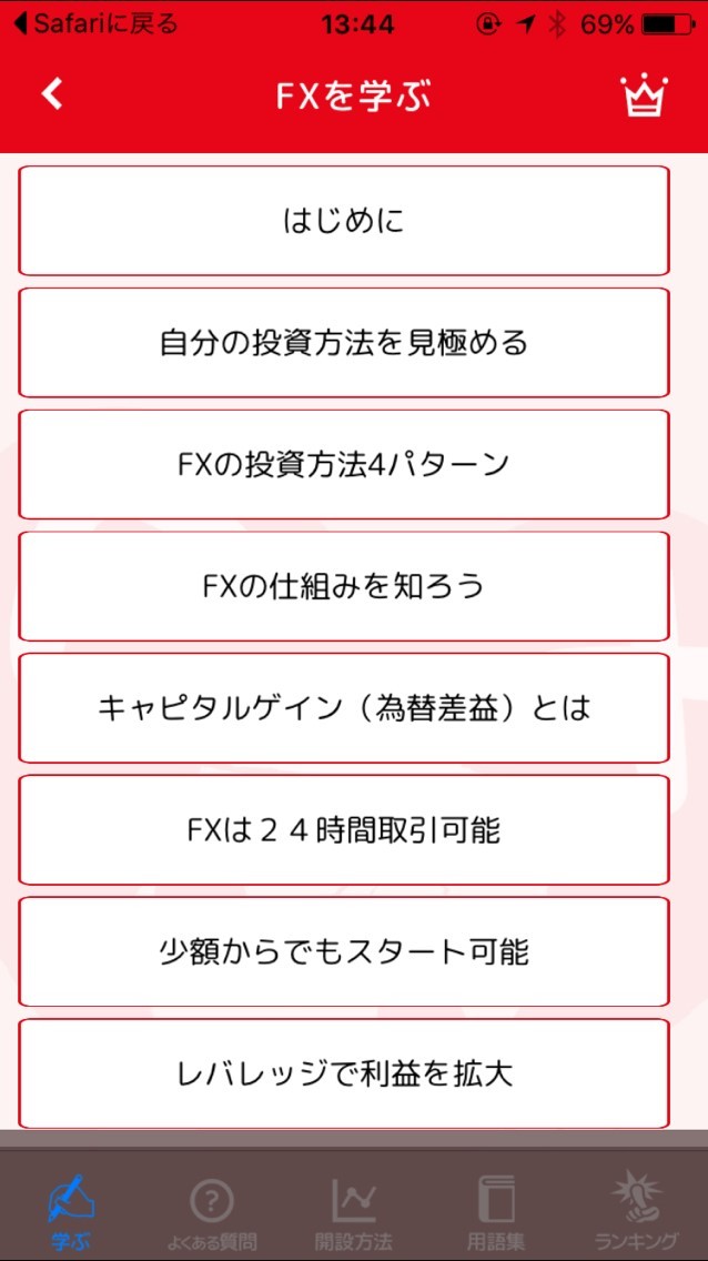 このアプリを利用すれば、FXの用語や口座開設についてしっかりと学ぶことができます。FXの会社ランキングも掲載されているので、口座選びの参考にするのもおすすめです。