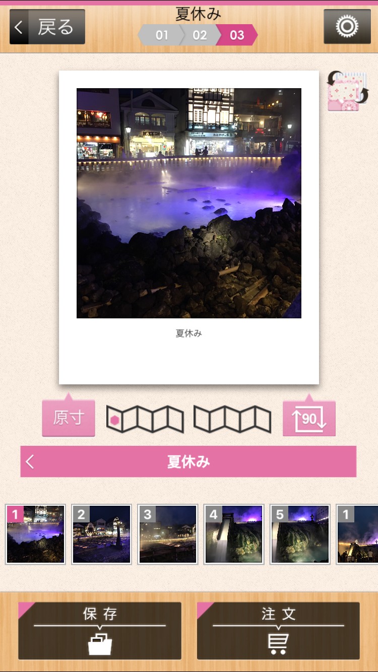 横が9cm、縦が11cmのカードが繋がって、アコーディオン型に開くようなフォトカードを注文することができるアプリなのです。