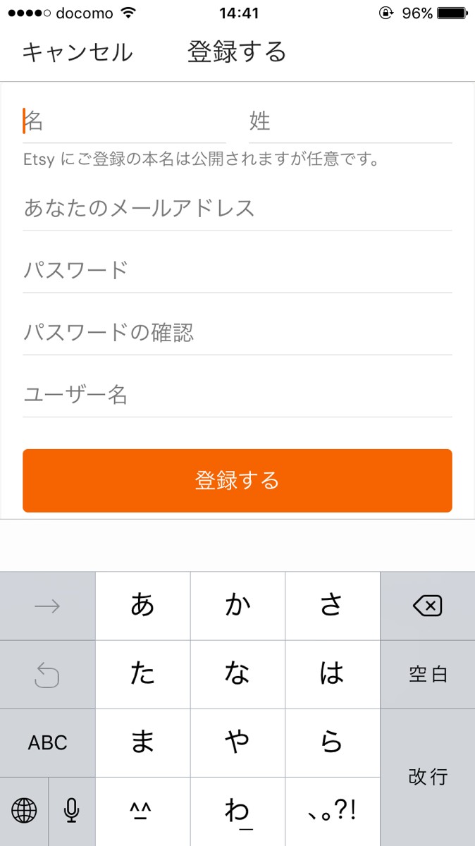 アプリ取得後、ユーザー登録を始めます。登録はFacebookアカウントでも可能なので、好きな登録方法を選びましょう。直接登録するには、名前の入力やメールアドレスが必要です。案内に従って登録をしましょう。