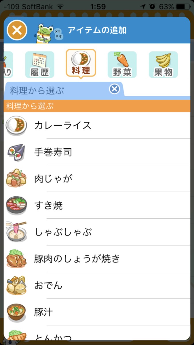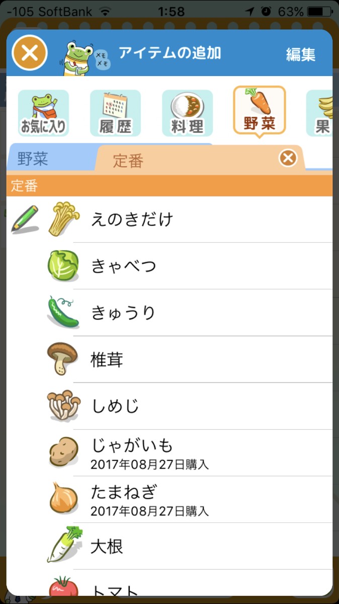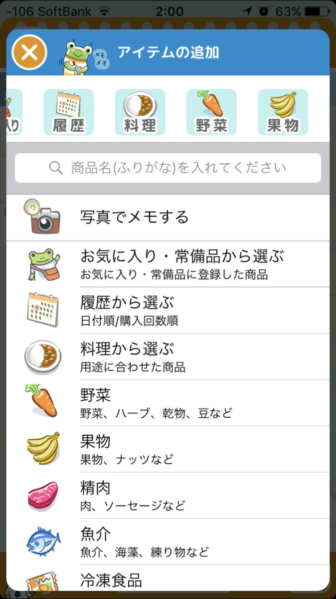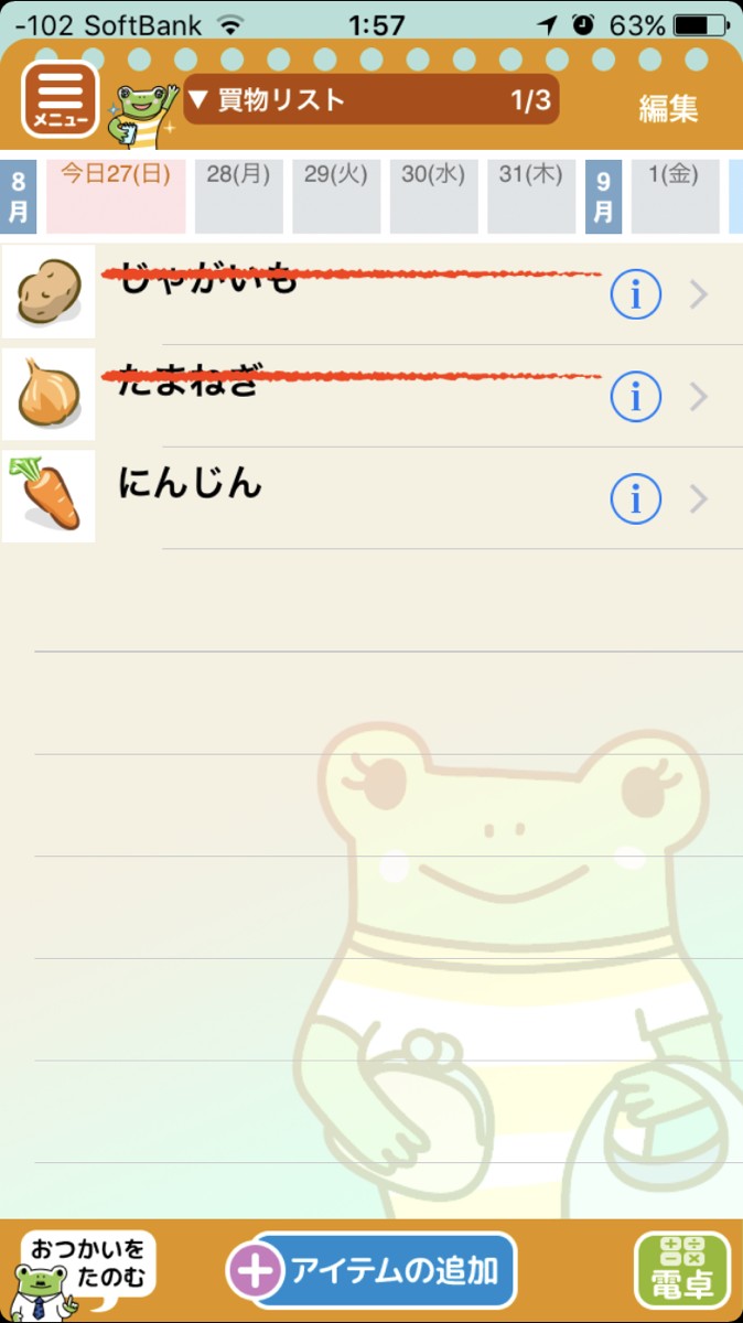 5.左上の「×」をタップで、買い物リスト画面に移ります。