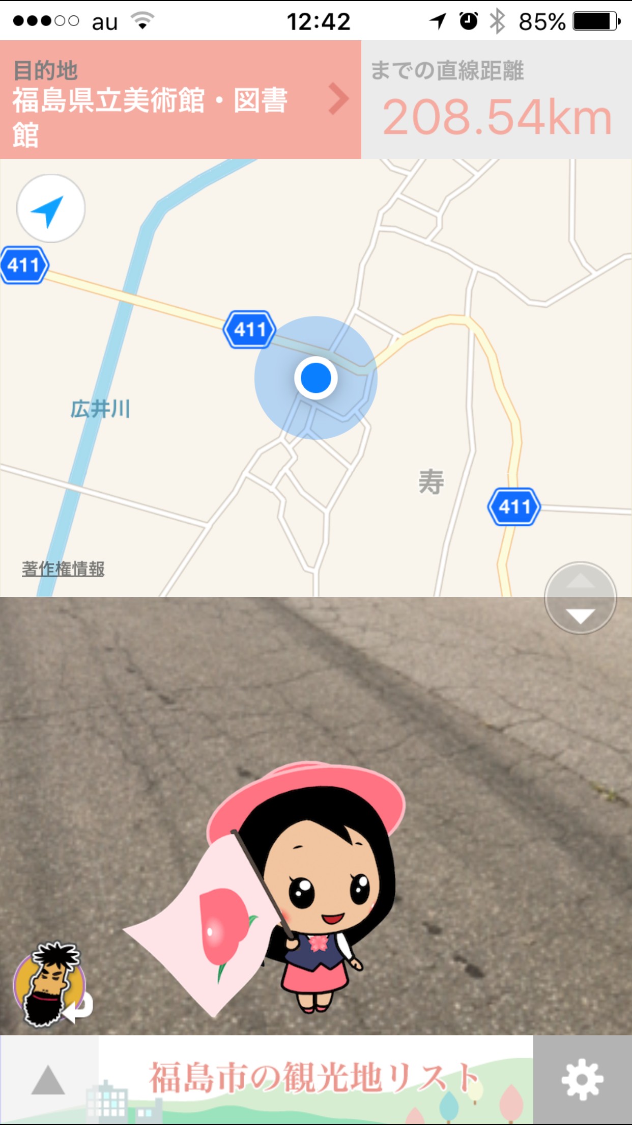 「指さしナビ〜福島市〜」は観光スポットの場所や情報を知ることができ、そこまでのルートをキャラクターと地図を使って案内してくれる旅行者には嬉しいアプリになっています。