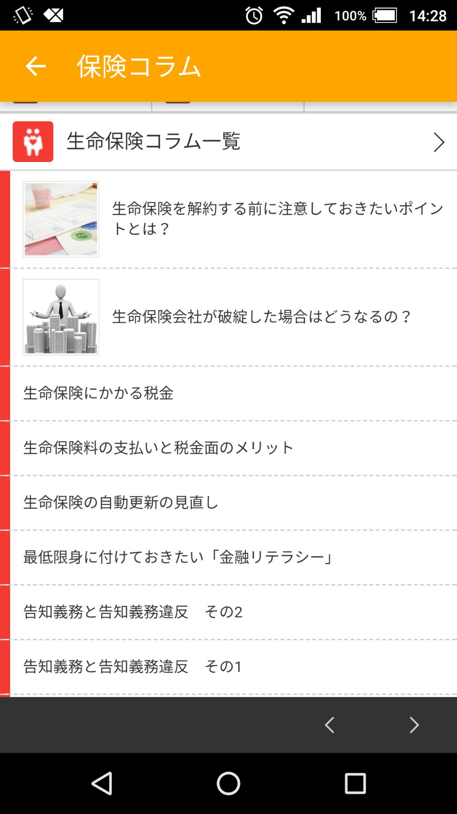 アプリをインストールして保険会社を検討し始める前に利用してほしいのが、コンテンツの1つである「保険コラム」のコーナーです。