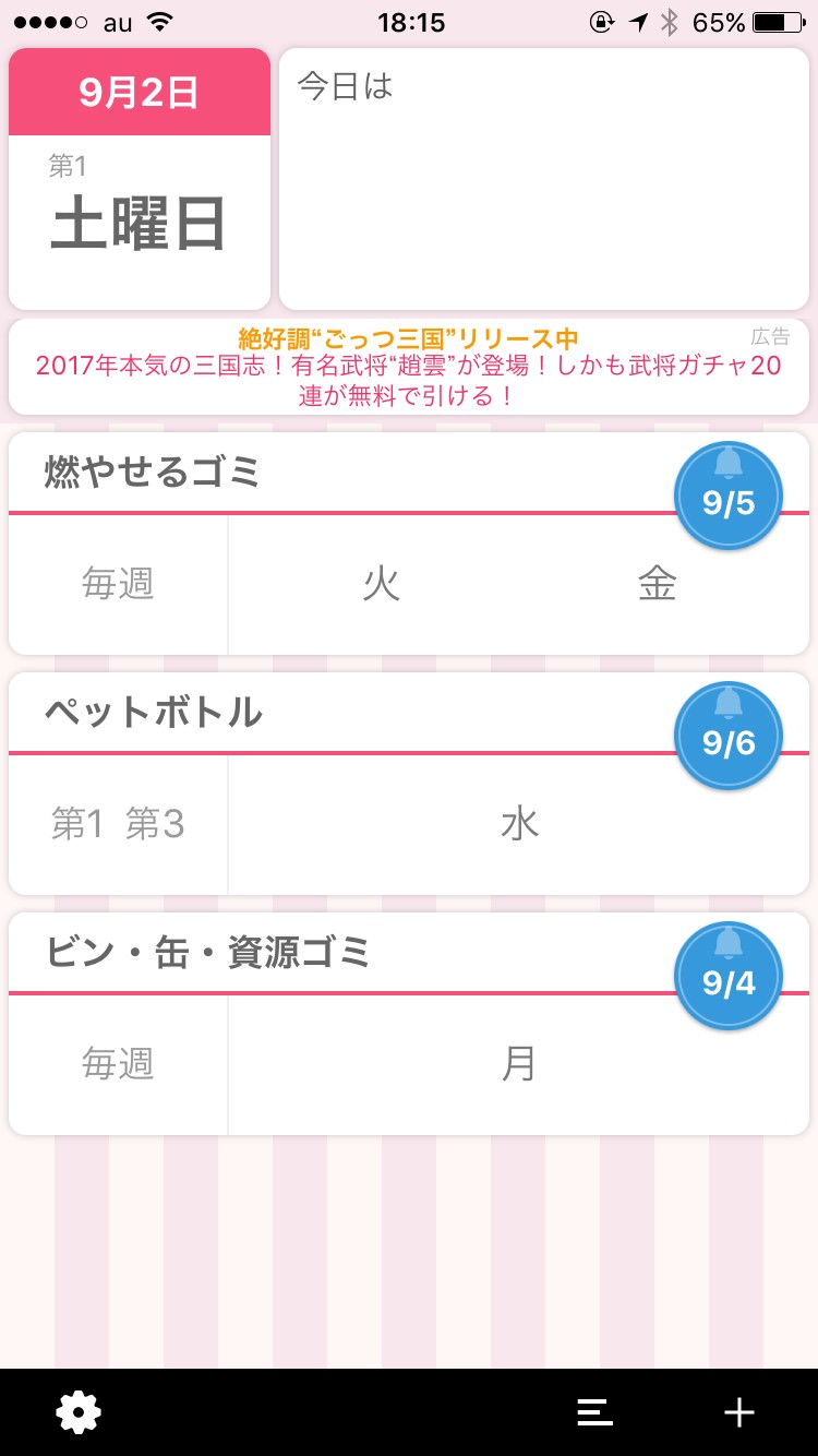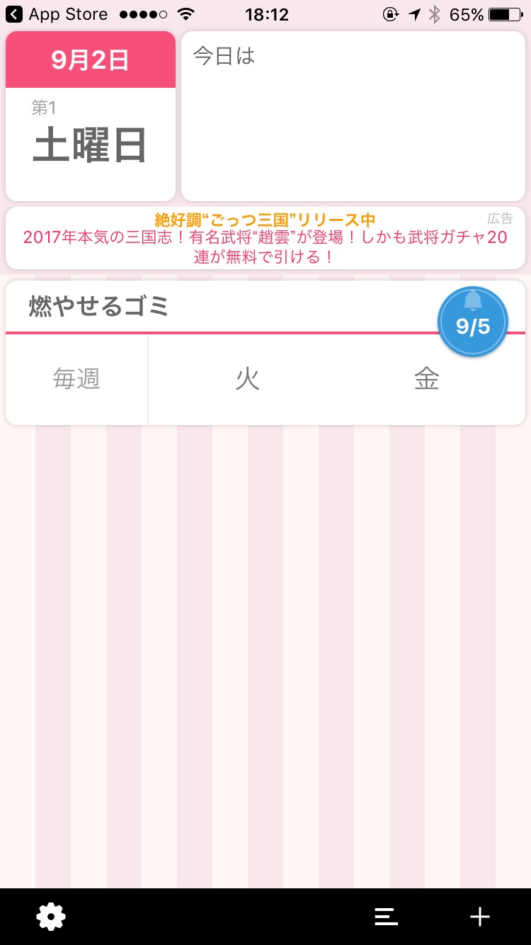 そして右下の「+」マークをタップすると、ゴミの日を登録できます。