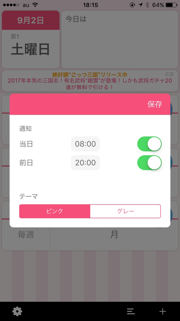 前日と当日にタスク通知してくれるので、ゴミの出し忘れをなくすことができそうですね。