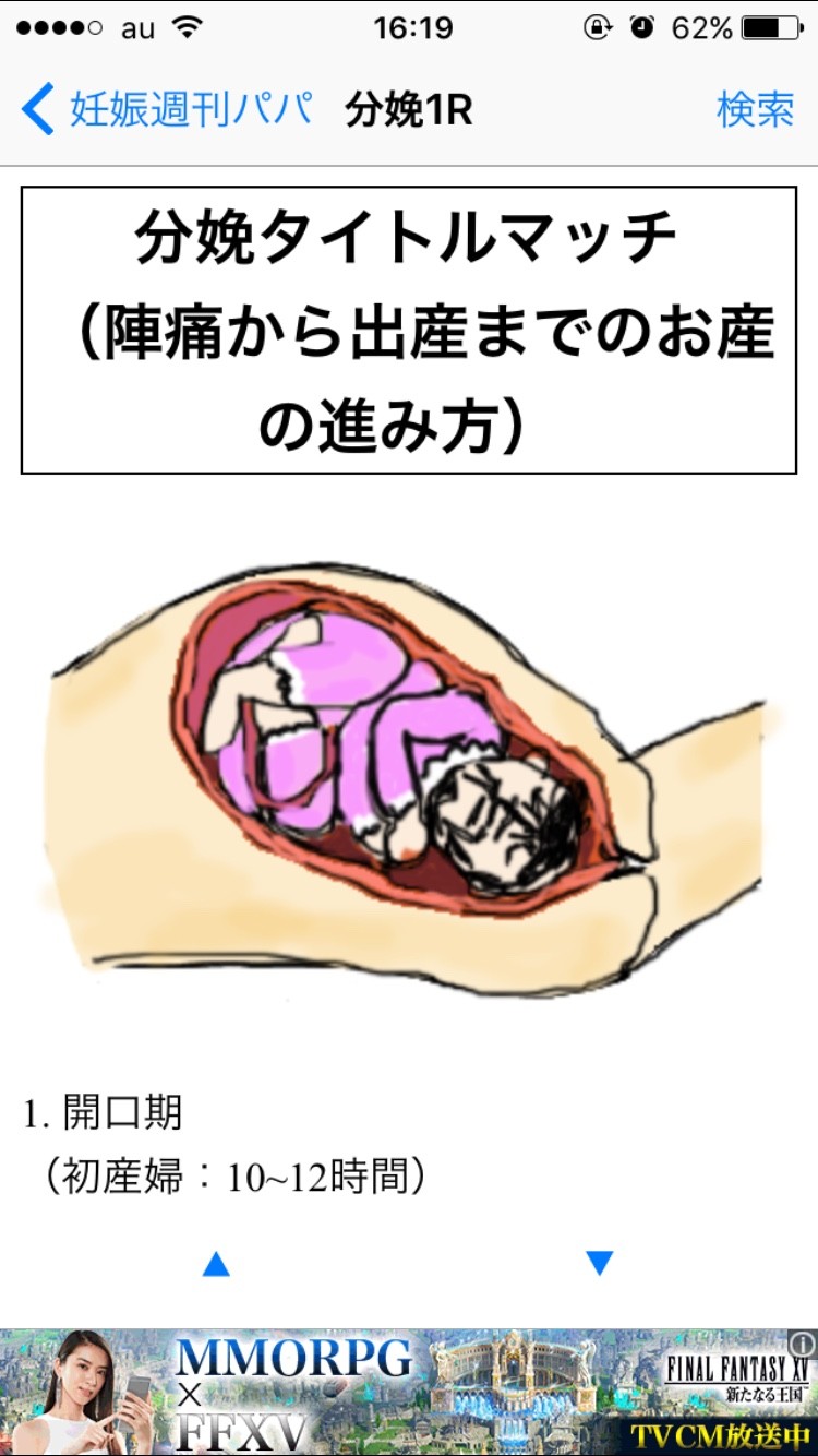 そんな時もお父さんはオロオロしたり、何をしたらいいかわからなかったり…でも大丈夫。このアプリには出産の解説もついています。