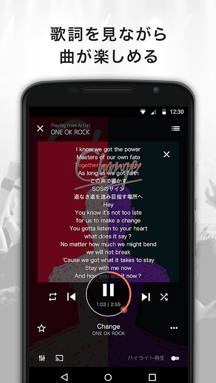 AWAの最大のメリットが「歌詞表示機能」で、対応している楽曲の歌詞をテキストで表示することができます。
