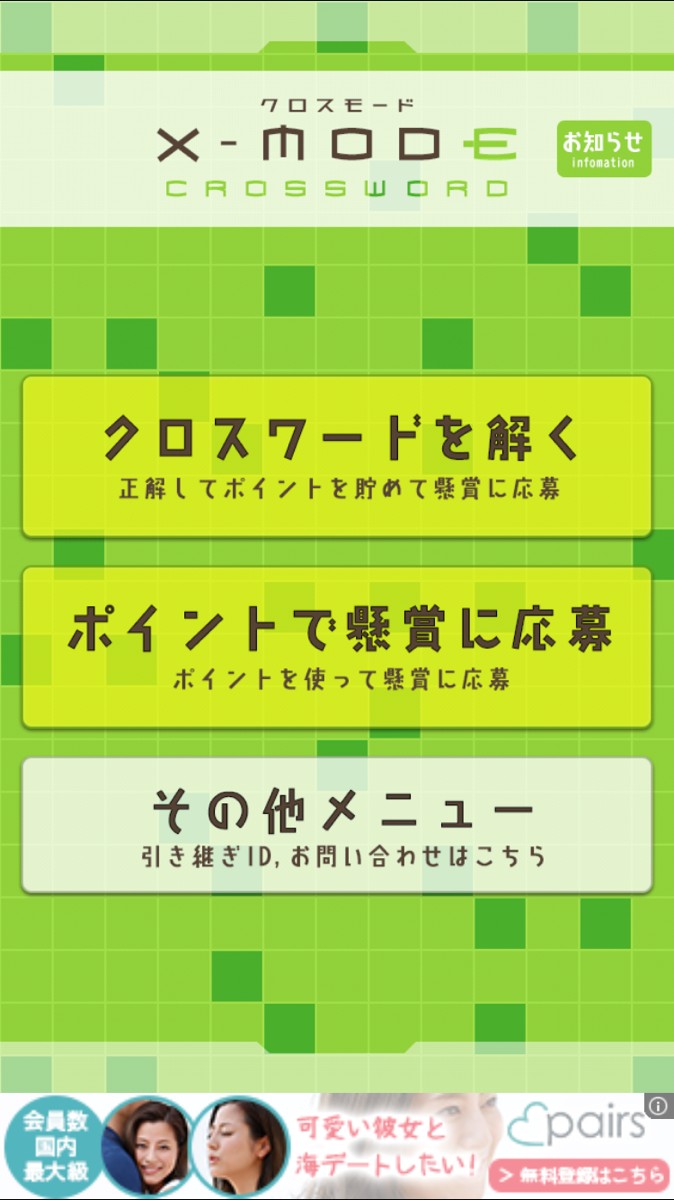 「無料豪華懸賞クロスワード x-mode(クロスモード)」ゲームをしてポイントを貯めよう!