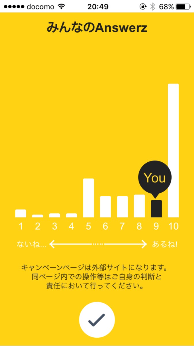 アンケート用紙に記入する場合の多くは、みんなの答えを見ることができません。しかし、このアプリはアンケートに答えた後で、アンケートの集計をグラフで表示してくれます。みんながどんな回答をしているのかや、あなたの回答はどこに位置するのかをすぐに確認することができますよ!