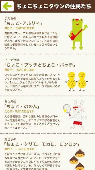 ちょこちょこタウンの住民たちの紹介をのぞいてみましょう。