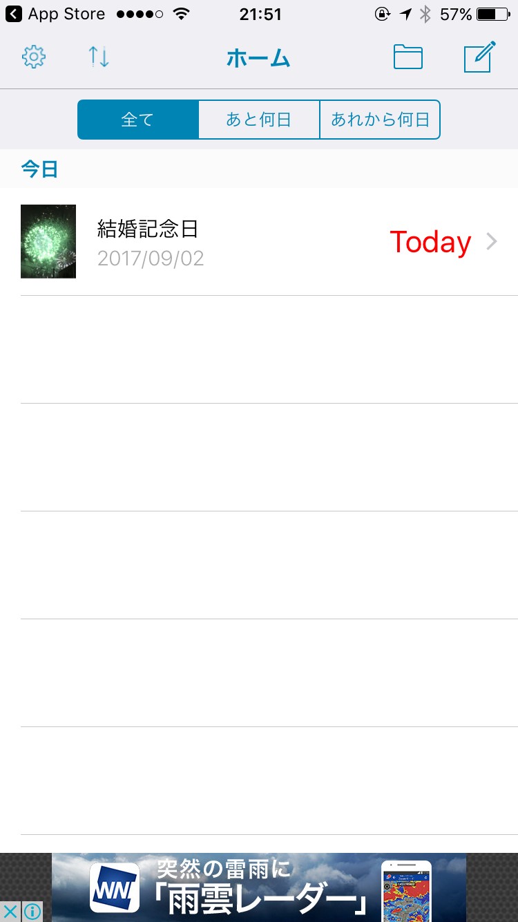 アプリを立ち上げて、早速記念日を登録していきましょう。