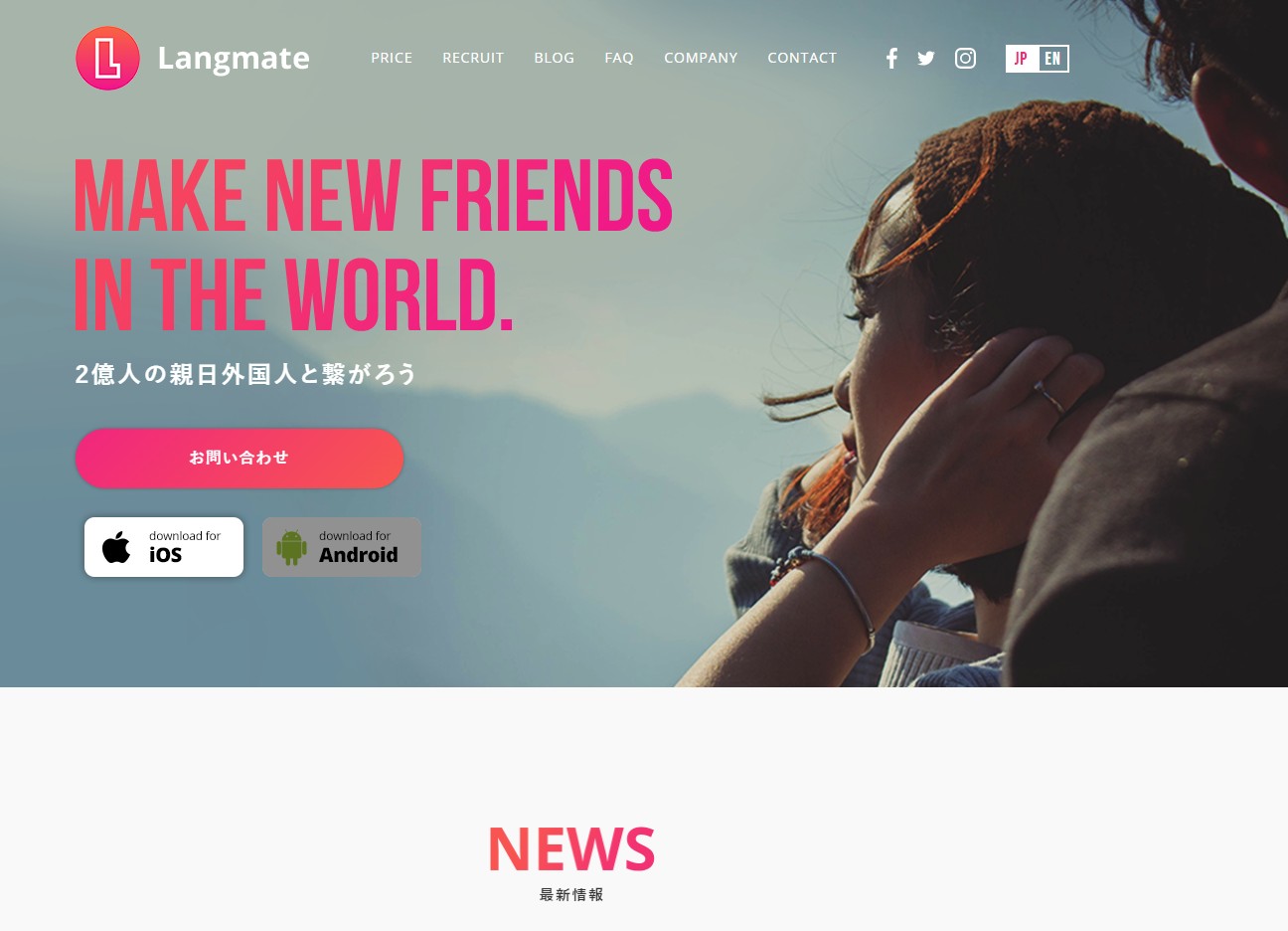 「Langmate」は、親日外国人に特化したマッチングアプリで、約90%のユーザーが利用開始1時間以内にマッチングを成立させている実績があります。日本在住の外国人以外にもアメリカやイギリス、ドイツ、香港など210カ国以上の親日外国人と国際交流が可能です。出会える距離にいる親日外国人を見つけることができるので、遠出をしなくてもアメリカ人の友達を見つけることができます。また、気になる人が見つかった場合は、アプリ内の機能でメールを相手に送ることができ、仲良くなることが可能です。利用料金は3つのプランがあり、短期間で友達を見つけたい場合は1ヵ月プランがおすすめ。退会はいつでも可能で、複雑な手続きがないので気軽に始めることができるでしょう。
