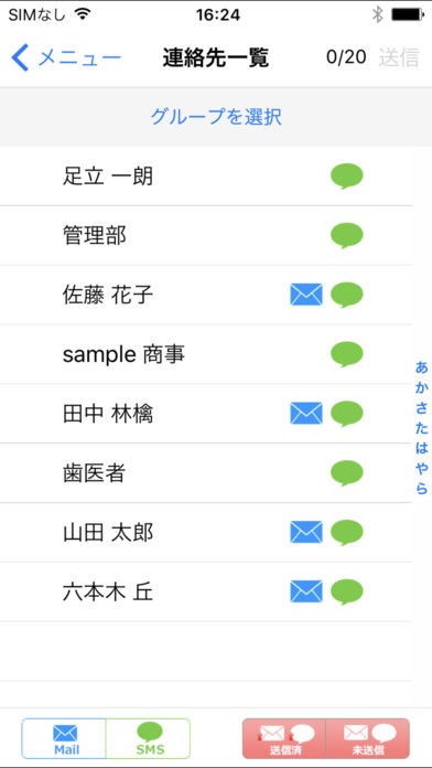 ・20人単位での一斉送信が可能