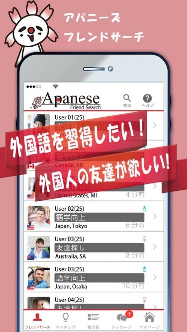 「外国人と日本人の友達作りならアパニーズ」は、外国の人と交流したいけど緊張してしまう人や外国人の友達が欲しいと考えている人などにピッタリのアプリです。メールアドレスか便利なフェイスブック認証ログインで登録ができ、簡単に始めることができます。ユーザー検索機能も充実しており、出身国・希望言語・利用目的・ご近所検索も付いていて使いやすく便利です。香港人との交流をはかりたいと考えている人もすぐに相手を見つけることができます。また外国語での読み書きが苦手な場合でも、翻訳機能をタップすればすぐに翻訳可能です。あいさつ文程度の簡単な文章であれば、定型翻訳機能利用をおすすめします。マッチング後会う約束をするなら、待ち合わせMAP機能を使うと便利です。MAP上でタップできるので行き場所がわかりやすく迷う心配もありません。